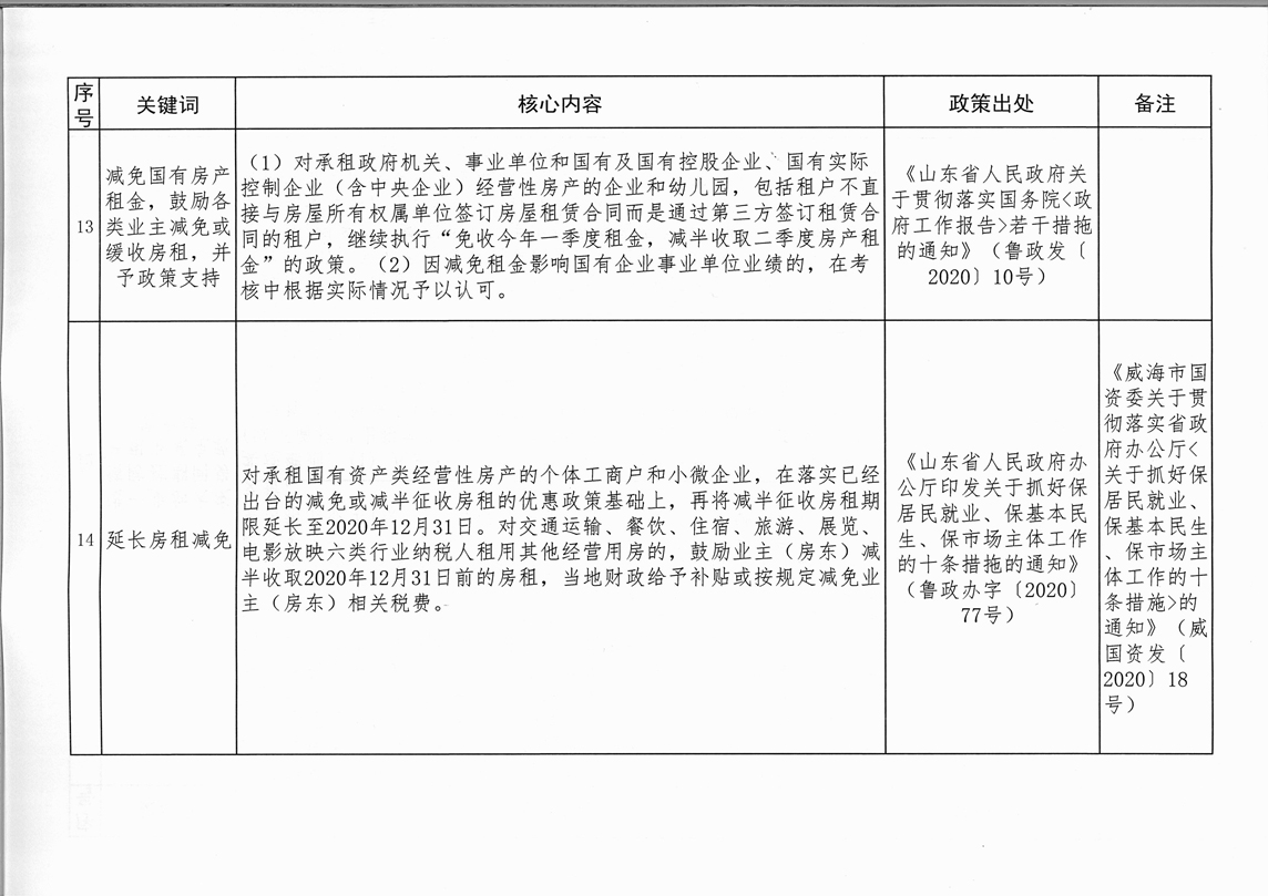 為全面落實“六穩(wěn)”、“六?!比蝿?,進一步推動國有企業(yè)房租減免政策落地落實,現(xiàn)將《受疫情影響2020年度房租減免等政策干貨匯總表》及監(jiān)督投訴電話予以公告。