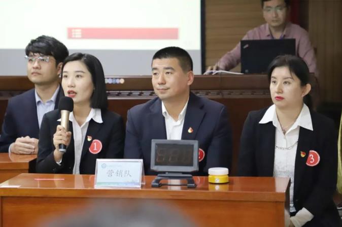 “蓬勃飛躍,勇爭(zhēng)第一!”“紅色物業(yè),為民服務(wù)!”“不忘初心,砥礪前行!”“開拓市場(chǎng),有我最強(qiáng)!”在一聲聲洪亮的口號(hào)聲中,比賽拉開了序幕。此次黨史知識(shí)競(jìng)賽內(nèi)容新穎、形式創(chuàng)新,競(jìng)賽全程采取隨機(jī)抽題的方式,分別設(shè)置了必答題、搶答題、風(fēng)險(xiǎn)題三個(gè)競(jìng)賽環(huán)節(jié)。在第一關(guān)的必答題環(huán)節(jié),每隊(duì)輪流派出三名選手作答,大家應(yīng)答如流、自信滿滿,黨史知識(shí)儲(chǔ)備可見一斑,比賽氛圍熱烈。