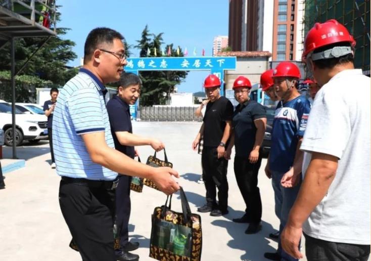 8月4日,市總工會職工服務中心主任鄭春剛一行在城建集團黨委副書記、總經(jīng)理孫利劍和工會主席闞吉軍的陪同下,到集團新苑陽光項目部為冒高溫、戰(zhàn)酷暑的一線職工送清涼,表達關(guān)懷與慰問。