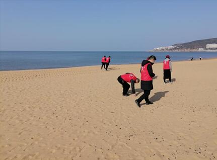 單獨(dú)行動(dòng)撿拾塑料瓶、零食包裝袋、煙頭等丟棄物,有的二人成隊(duì)仔細(xì)清理沙灘中的碎石、玻璃等尖銳雜物,穿梭忙碌的身影構(gòu)成了一道靚麗的風(fēng)景線!沙灘上不時(shí)有游客從志愿者們身邊走過,有的駐足微笑點(diǎn)頭示意,有的教導(dǎo)隨行的孩子不可以隨地亂扔垃圾。令人欣喜的是在志愿者們的感召下,一些游客也主動(dòng)加入到隊(duì)伍中來撿拾垃圾……經(jīng)過二個(gè)多小時(shí)的努力,志愿者們共清理出垃圾10余袋,放眼望去海水浴場沙灘煥然一新!
