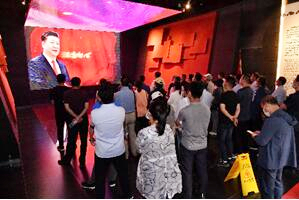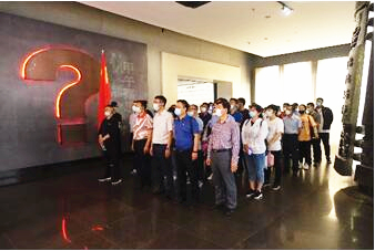 集團(tuán)黨員一起穿越了120多年的時(shí)光隧道,共同回顧了甲午戰(zhàn)爭(zhēng)以來(lái)中華民族救亡圖存的曲折歷程,深刻理解了歷史和人民為什么選擇共產(chǎn)黨、為什么選擇社會(huì)主義等重大話(huà)題,進(jìn)一步增強(qiáng)了對(duì)社會(huì)主義的理論自信、道路自信、制度自信、文化自信。面對(duì)黨旗,集團(tuán)黨委副書(shū)記孫曉東同志帶領(lǐng)全體黨員一起重溫入黨誓詞:“我志愿加入中國(guó)共產(chǎn)黨……為共產(chǎn)主義奮斗終身,隨時(shí)準(zhǔn)備為黨和人民犧牲一切,永不叛黨。”鏗鏘有力的宣誓聲久久回蕩在館內(nèi),深深感染了現(xiàn)場(chǎng)所有人……