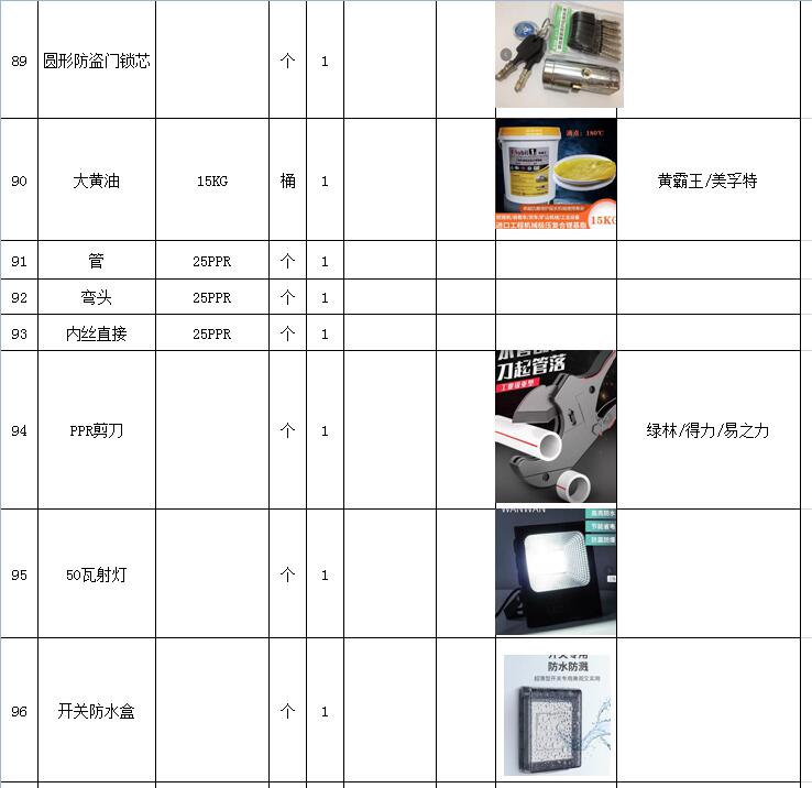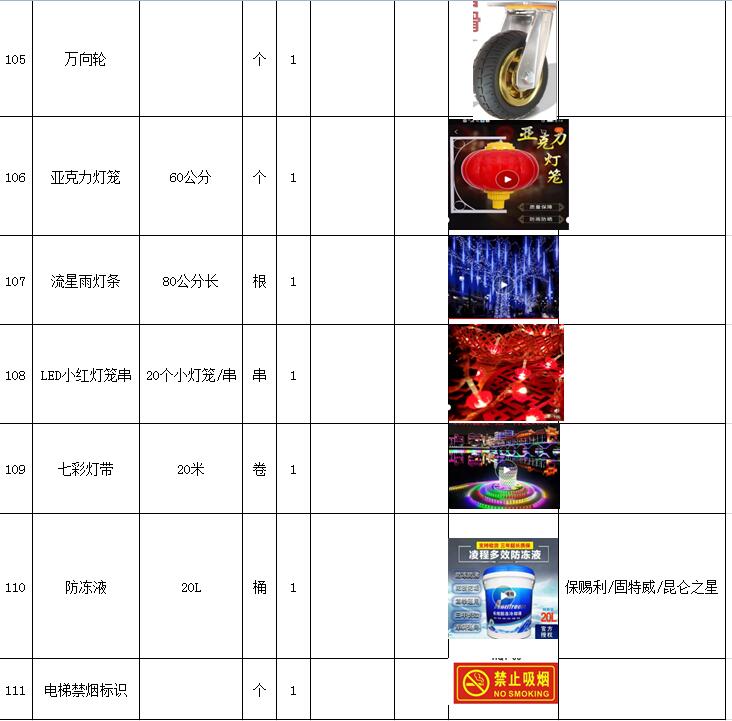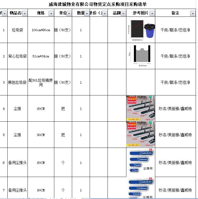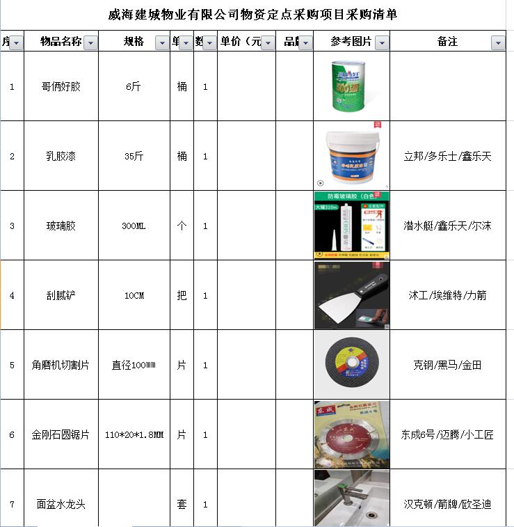(5)采購內(nèi)容:威海建城物業(yè)物資定點采購,主要包括五金、水暖管件、保潔、維修、綠化所需物資、應急維修的其他物資等,采購清單詳見附件。