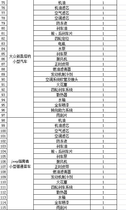 (4)采購內(nèi)容:威海城建集團10輛公車定點維修保養(yǎng)等服務(wù)內(nèi)容,采購清單詳見附件。